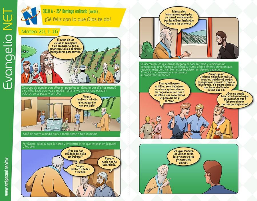 Mateo 20, 1-16. Evangelio Ilustrado para niños. VIDEO 22 de Septiembre de 2017 Conoce el mensaje que hoy el Evangelio tiene para ti. El amor de Dios supera lo que nosotros llamamos justicia humana, a todos nos quere por igual. Like 2 Dislike 0 Otros artículosHorario de atención del Despacho Parroquial y de visita a los cenizarios24 de Septiembre de 2025¿Necesitas algún servicio u orientación para intenciones de misas, bautismos, bodas, etc.? ¡¡Comunícate con nosotros!! Conferencias por el P. Astolfo Moreno2 de Agosto de 2025Empieza a hacer parte de nuestra comunidad y recibe charlas de formación, reflexiones y apoyo espiritual frecuente en tu...