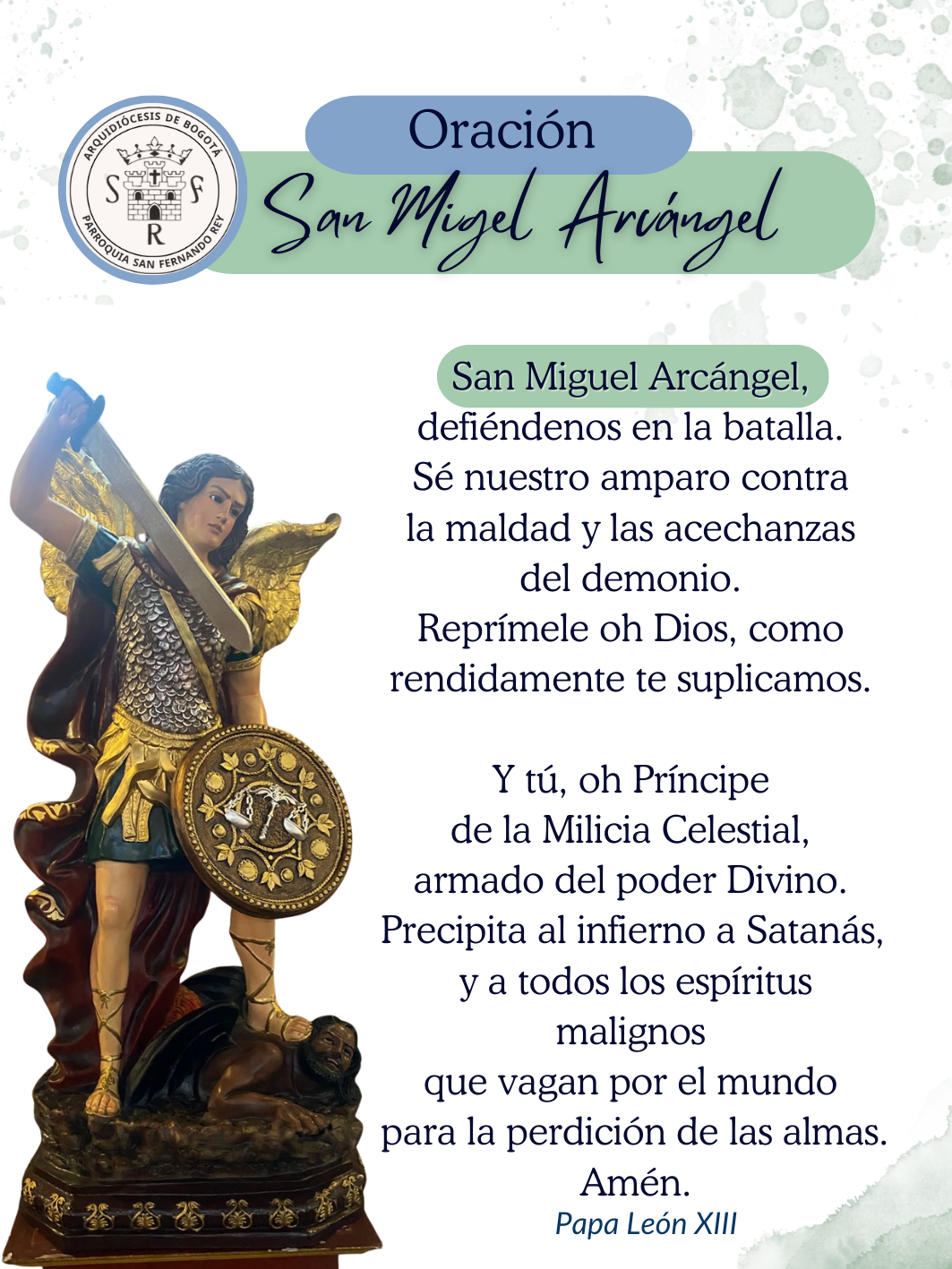 BoletinesOración a San Miguel Arcángel20 de Enero de 2026Oración a San Miguel (León XIII, 18 de mayo de 1890; Acta Apostolicae Sedis, p. 743) Conoce más sobre esta devoción en el siguiente link: DA CLIC AQUÍ Like 1 Dislike 0