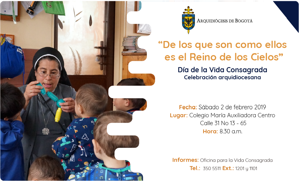 Centro de información Yo quiero Noticias Boletines Eventos Artículos Canonización Mensajes del Señor Cardenal Cartas pastorales Homilías Mensajes La voz del pastor Documentos del Vaticano NoticiasDía de la Vida Consagrada - Celebración arquidiocesana1 de Febrero de 2019La Arquidiócesis de Bogotá, desde la Coordinación de Vida Consagrada, invitan a todos los miembros de la Vida Consagrada a la Celebración Arquidiocesana que tendrá…A continuación encontrará ubicación del Colegio: Like 0 Dislike 0 Noticias relacionadas Mensaje de Mons. Edwin Vanegas Cuervo, obispo auxiliar de Bogotá La Santa Misa en Semana Santa La Arquidiócesis de Bogotá celebra el nombramiento de Monseñor Paolo Rudelli en la Santa Sede