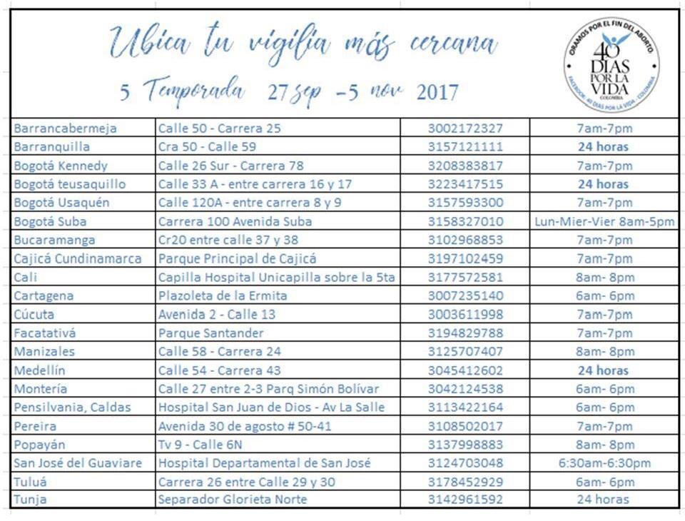 Desde el 27 de septiembre y hasta el 5 de noviembre, Colombia se unirá una vez más vez a la nueva versión de la vigilia global de oración por el final del aborto en el…