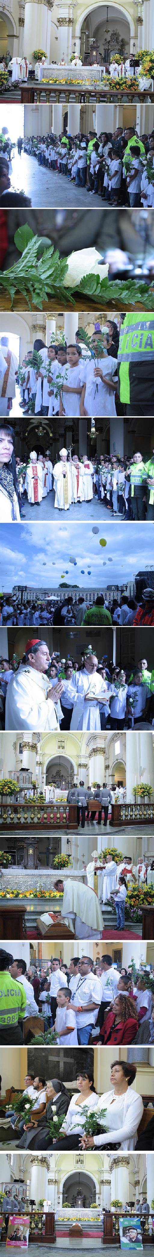 Entre aplausos, calles de honor, rosas, pañuelos y camisetas blancas en la Catedral Primada de Colombia, se llevó a cabo el último adiós al padre Javier de Nicoló.