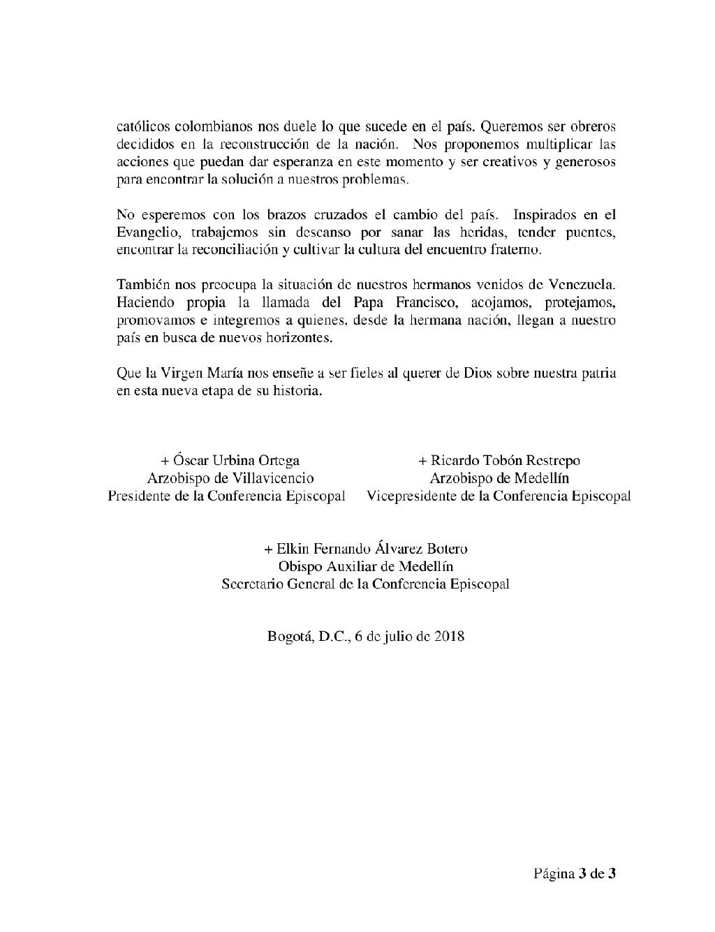 Centro de información Yo quiero Noticias Boletines Eventos Artículos Canonización Mensajes del Señor Cardenal Cartas pastorales Homilías Mensajes La voz del pastor Documentos del Vaticano NoticiasObispos invitan a construir unidad, combatir la corrupción y trabajar por la paz6 de Julio de 2018Tras concluir la CVI Asamblea Plenaria del Episcopado Colombiano, a través de un mensaje, los obispos del país invitaron a las nuevas autoridades y a todos los… Like 0 Dislike 0 Noticias relacionadas Mensaje de Mons. Edwin Vanegas Cuervo, obispo auxiliar de Bogotá La Santa Misa en Semana Santa La Arquidiócesis de Bogotá celebra el nombramiento de Monseñor Paolo Rudelli en la Santa Sede