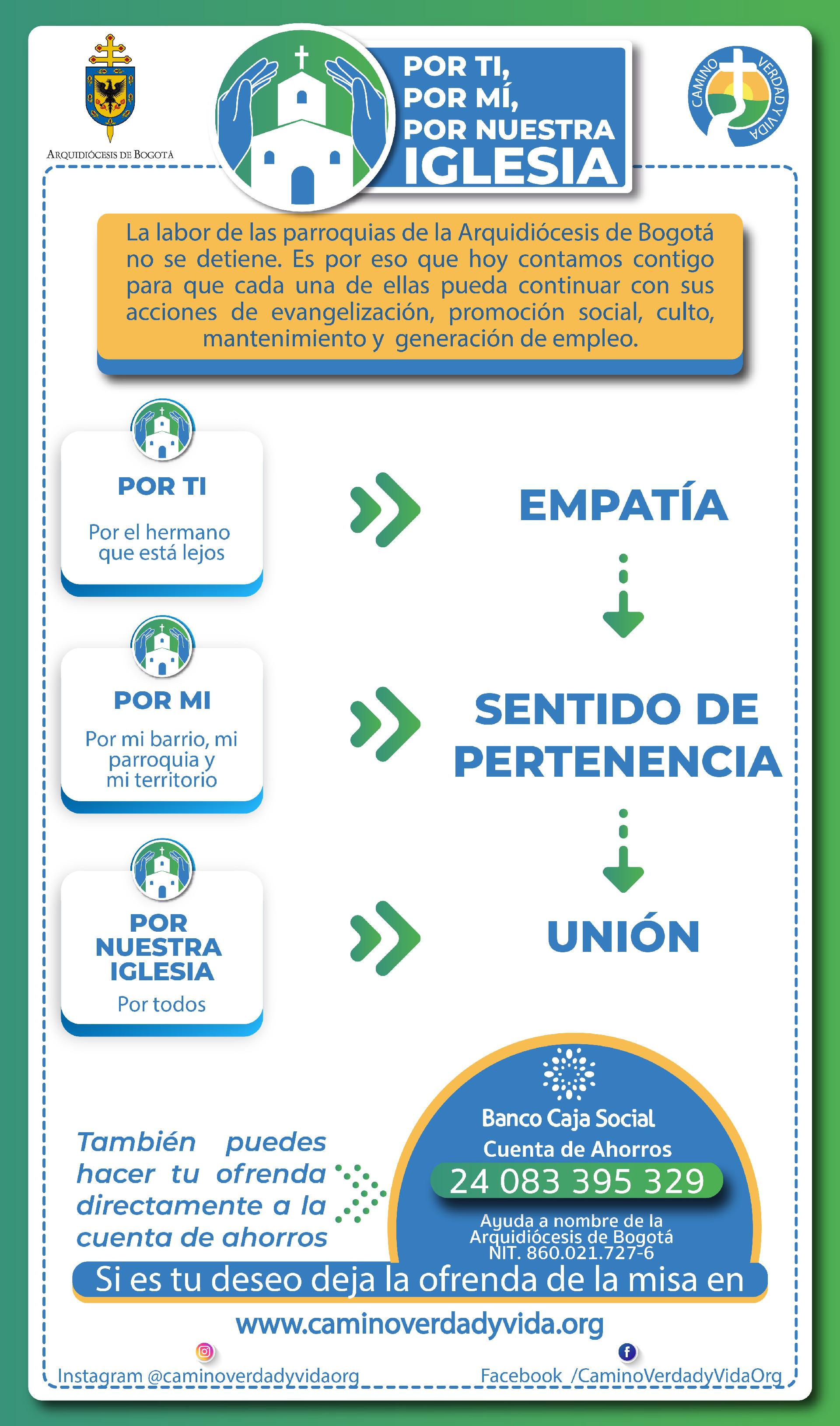Centro de información Yo quiero Noticias Boletines Eventos Artículos Canonización Mensajes del Señor Cardenal Cartas pastorales Homilías Mensajes La voz del pastor Documentos del Vaticano NoticiasPor ti, por mí, por nuestra Iglesia20 de Noviembre de 2020En la Arquidiócesis de Bogotá caminamos hacia una evangelización más misionera, más en salida, más en sintonía con lo que Dios quiere de nosotros y con lo que nuestra…Mayor Información:https://caminoverdadyvida.org/ Like 0 Dislike 0 Noticias relacionadas Video del papa - noviembre de 2025 La Iglesia Samaritana que abraza a Bogotá #Destacado
