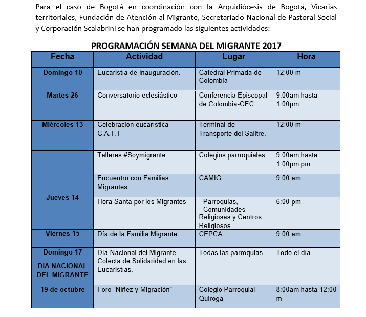 Durante la semana del 10 al 17 de septiembre de 2017, hacemos un llamado a reflexionar que son principalmente los niños quienes más sufren las graves consecuencias de la migración, casi siempre causada por la violencia, la miseria y las condiciones ambientales, factores a los que hay que añadir la globalización en sus aspectos negativos.