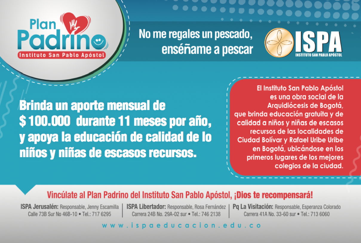 Centro de información Yo quiero Noticias Boletines Eventos Artículos Canonización Mensajes del Señor Cardenal Cartas pastorales Homilías Mensajes La voz del pastor Documentos del Vaticano NoticiasVincúlate al plan padrino27 de Mayo de 2019 Like 0 Dislike 0 Noticias relacionadas Mensaje de Mons. Edwin Vanegas Cuervo, obispo auxiliar de Bogotá La Santa Misa en Semana Santa La Arquidiócesis de Bogotá celebra el nombramiento de Monseñor Paolo Rudelli en la Santa Sede